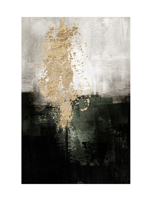 An abstract piece, Gianna combines deep green shades with gold detailing layered over a stone and grey background. An up close photograph of artwork on canvas, up close the details in this piece add texture, depth and warmth to your home. Pair with a premium frame from our collection for a bold statement of elegance in your home.