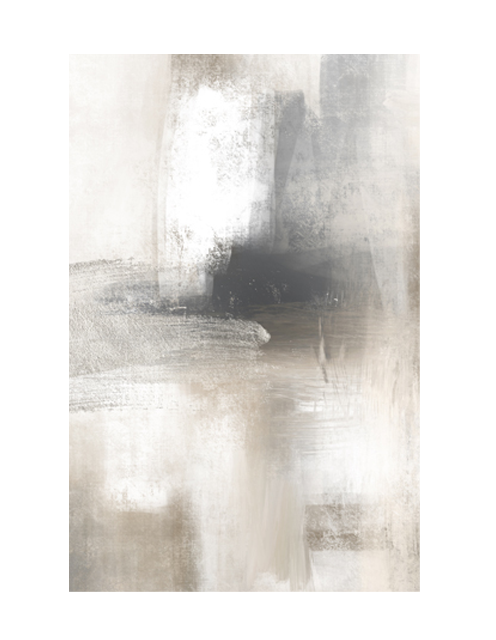 A photograph of an abstract painting featuring dusky grey and natural tones, brought to life with a splash of sliver paint. The detail on this beautiful wall art print close up really shows the brushstrokes from the paintbrush which bring the design to life. Create your own art gallery at home with our abstract wall prints.