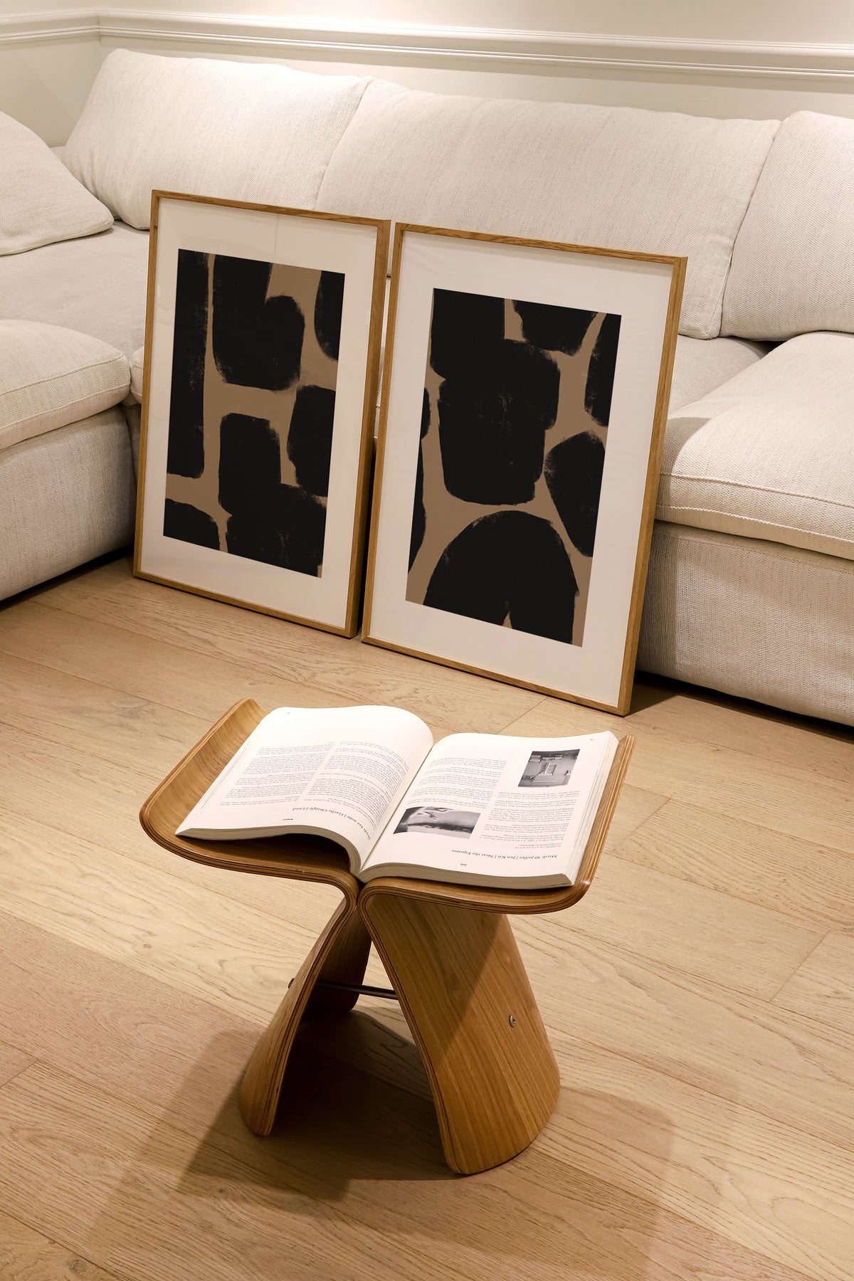 The Anna collection of wall art prints are a stunning abstract design reminiscent of a giraffe print. A unique black and deep warm beige print.