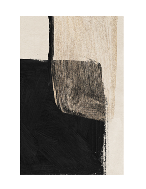Hoola is a striking abstract wall art piece combining neutral tones and beige with black and gold details to draw your attention and create a centrepiece you won't be able to help but admire. An up close photograph of abstract art, you can see the touches of black brushwork detail.