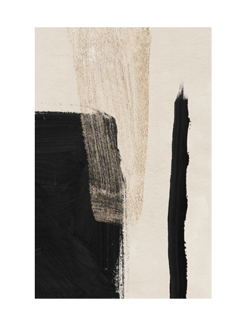 Hoola is a striking abstract wall art piece combining neutral tones and beige with black and gold details to draw your attention and create a centrepiece you won't be able to help but admire. An up close photograph of abstract art, you can see the touches of black brushwork detail.