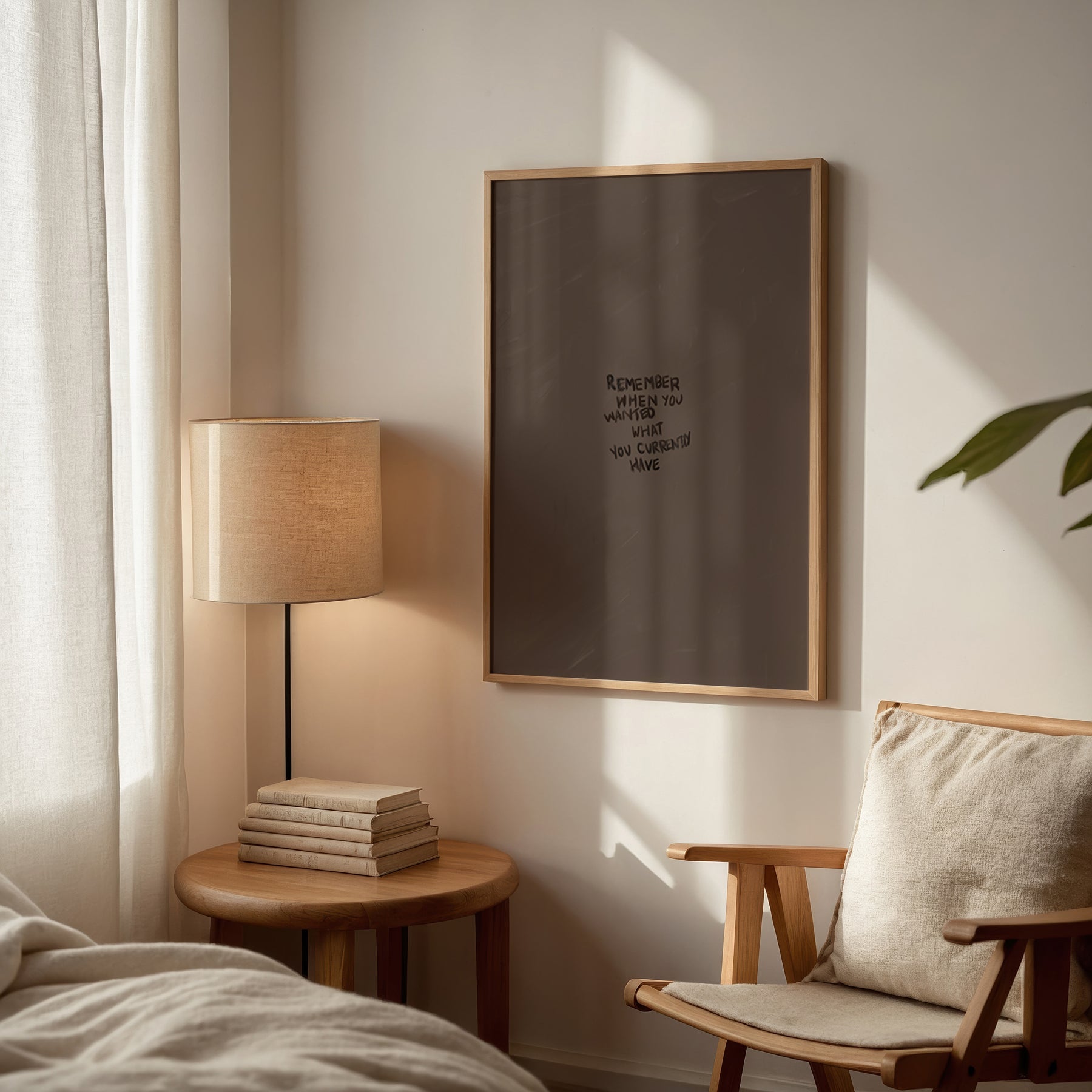 Inspire gratitude and mindfulness with this thoughtful wall print. Featuring the meaningful message "Remember when you wanted what you currently have," it serves as a daily reminder to appreciate life's blessings. Set against a warm chocolate brown backdrop, this piece brings both aesthetic appeal and emotional depth to your space. Perfect for bedrooms, home offices, or meditation areas, it encourages a positive perspective while adding sophisticated style to your walls. A powerful conversation starter that transforms your décor into a source of daily inspiration.